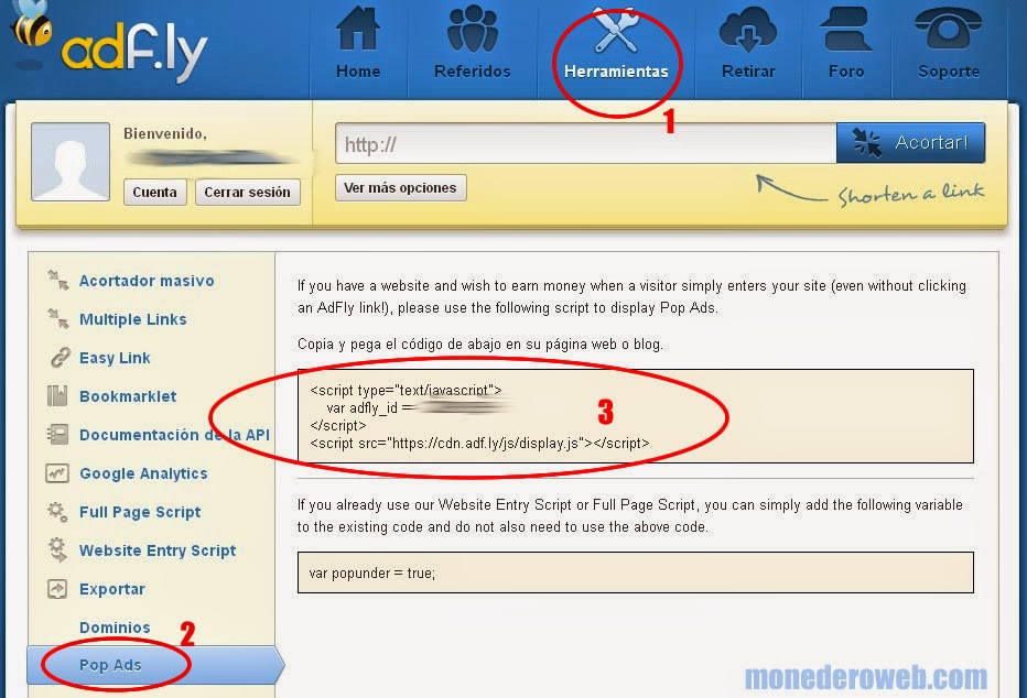 Pero la idea de este post es presentarte el nuevo servicio que nos ofrece adf.ly y que podemos acceder desde nuestro panel de control, se trata un sistema para que quienes posean un blog puedan mostrar un popups con publicidad y ganar dinero de estar forma mostrando publicidad.
